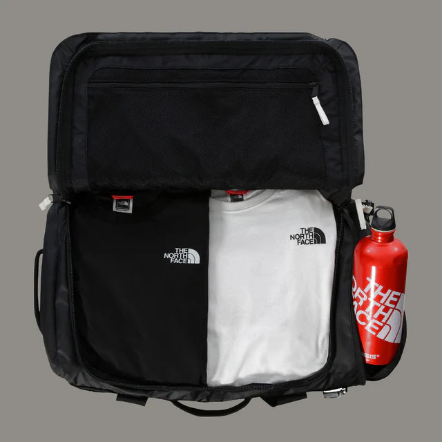 Our iconic Base Camp Duffel is the inspiration for the new Voyager. It's just as handy but weighs less and has even more pockets to store your stuff - with a focus on travel rather than back-and-beyond expeditions. You can carry it as a backpack or a duffel. It's got a laptop sleeve, an adjustable and removable divider in the main section, which definitely makes separating clean from dirty easier, and - to avoid frustrated rummaging - there's an external zipped pocket for your passport and phone. It's made from recycled fabric, too.