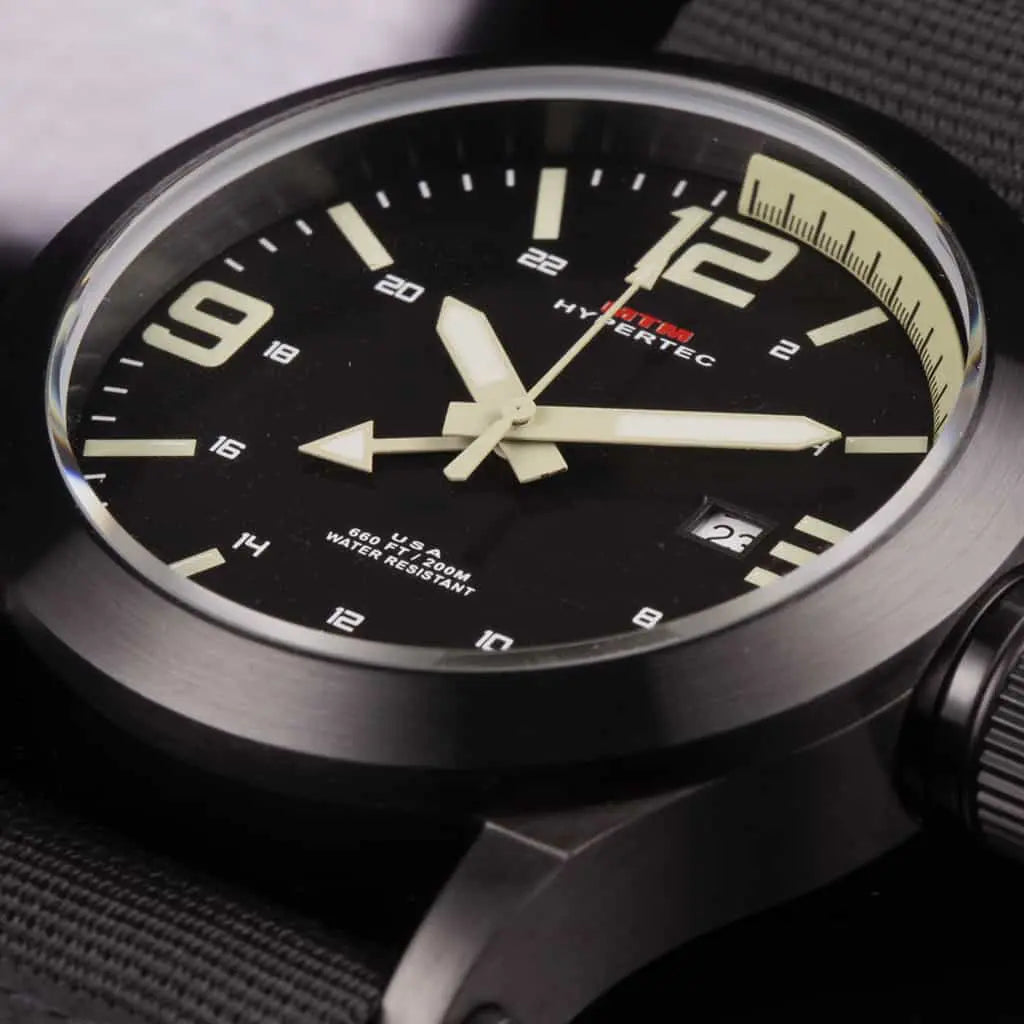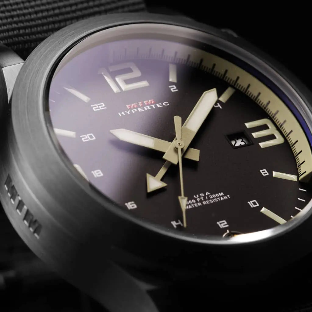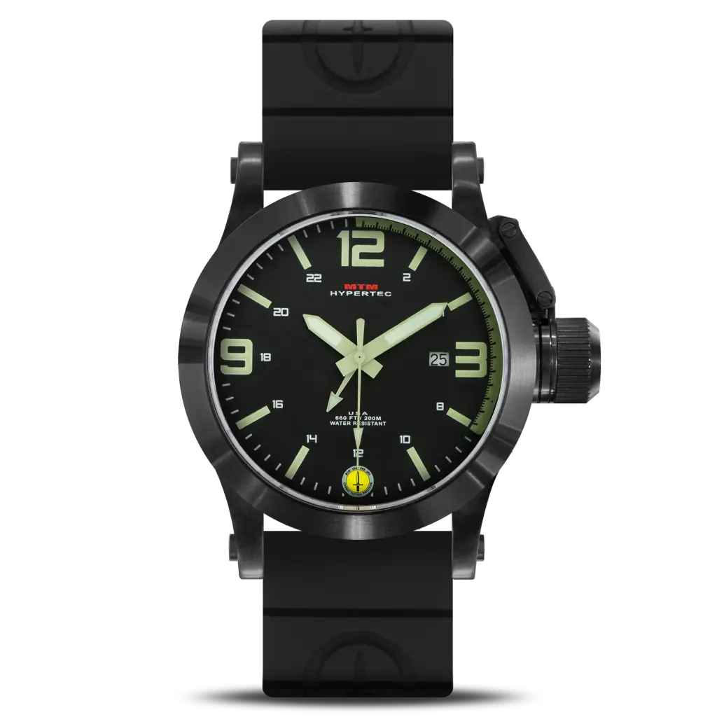 The MTM Black Hypertec 44 watch collection is a unique and stylish line of military-grade timepieces made for both the combatant and casual wearer. The MTM Hypertec features the same rugged specs as other MTM models plus a quick 24 hour time / GMT change function. The MTM Black Hypertec watch is available in three case sizes (40mm, 44mm & 49mm) to fit all wrist sizes and personal preferences.