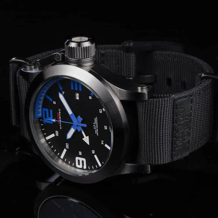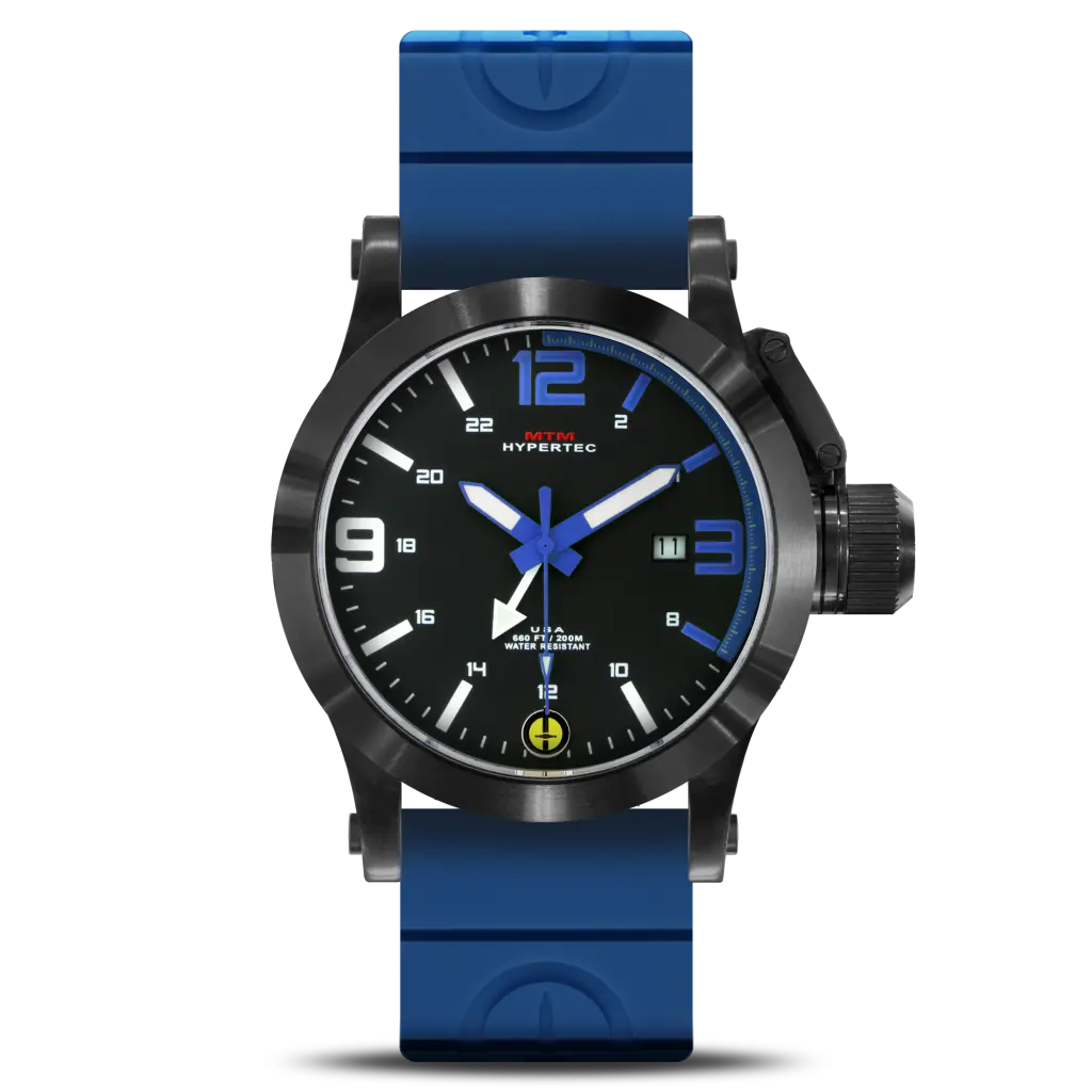 The MTM Black Hypertec 44 watch is a unique and stylish line of military-grade timepieces made for both the combatant and casual wearer. The MTM Hypertec features the same rugged specs as other MTM models plus a quick 24 hour time / GMT change function. The MTM Black Hypertec watch is available in three case sizes (40mm, 44mm & 49mm) to fit all wrist sizes and personal preferences. Purchase your Hypertec watch today.