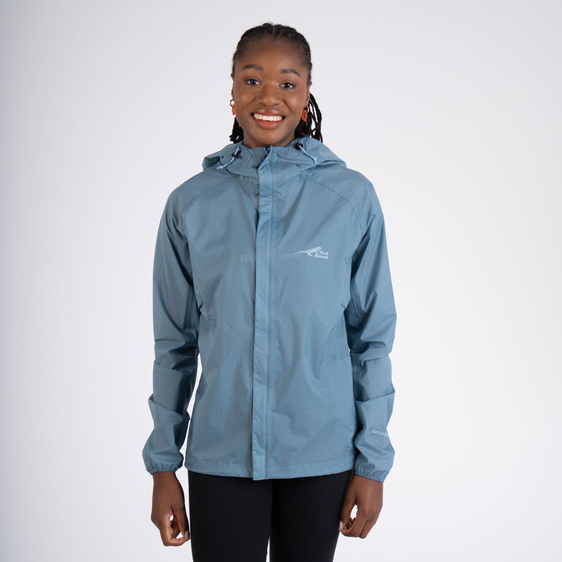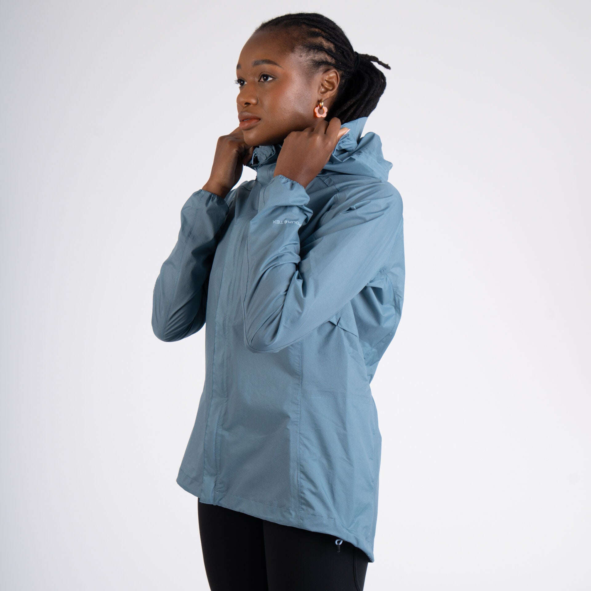 The Ladies Waterproof AR-X Running Jacket is essential to any trail runner or adventurer's kit bag. Lightweight and fully waterproof with sealed seams and 100% Nylon ripstop VapourTex fabric, this jacket is suited to Moderate Rain conditions. The hood's shaped brim aids in keeping water out of your face, while the double covered front zip protects your torso from getting wet. Highly packable into its own stash pocket for easy on-off adjustability when the weather is unpredictable. Forget the foul weather and explore unhindered in this performance tested waterproof jacket.