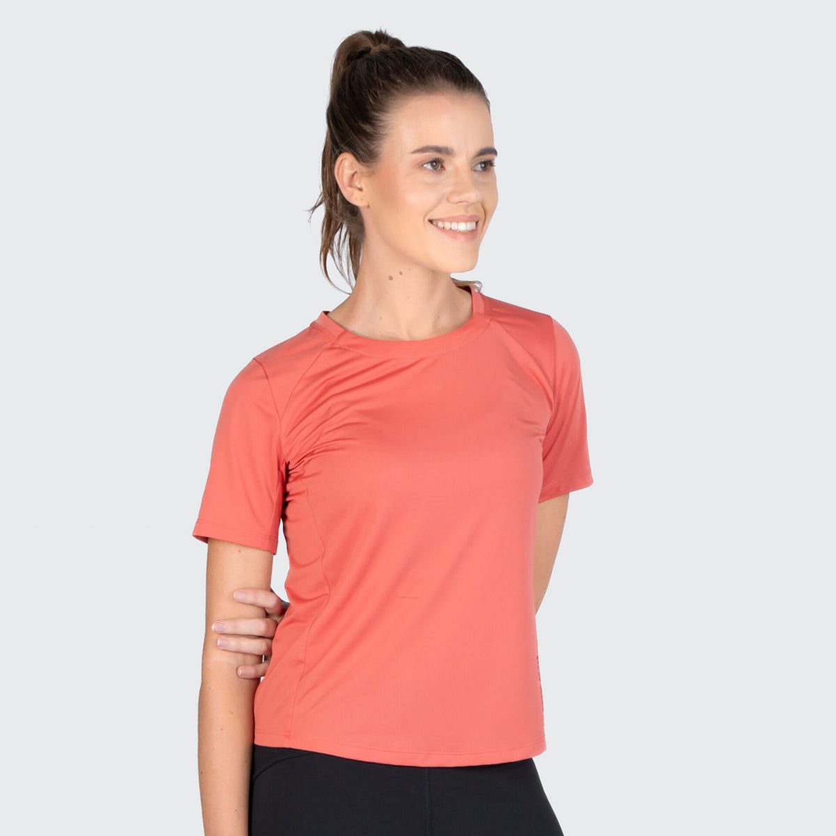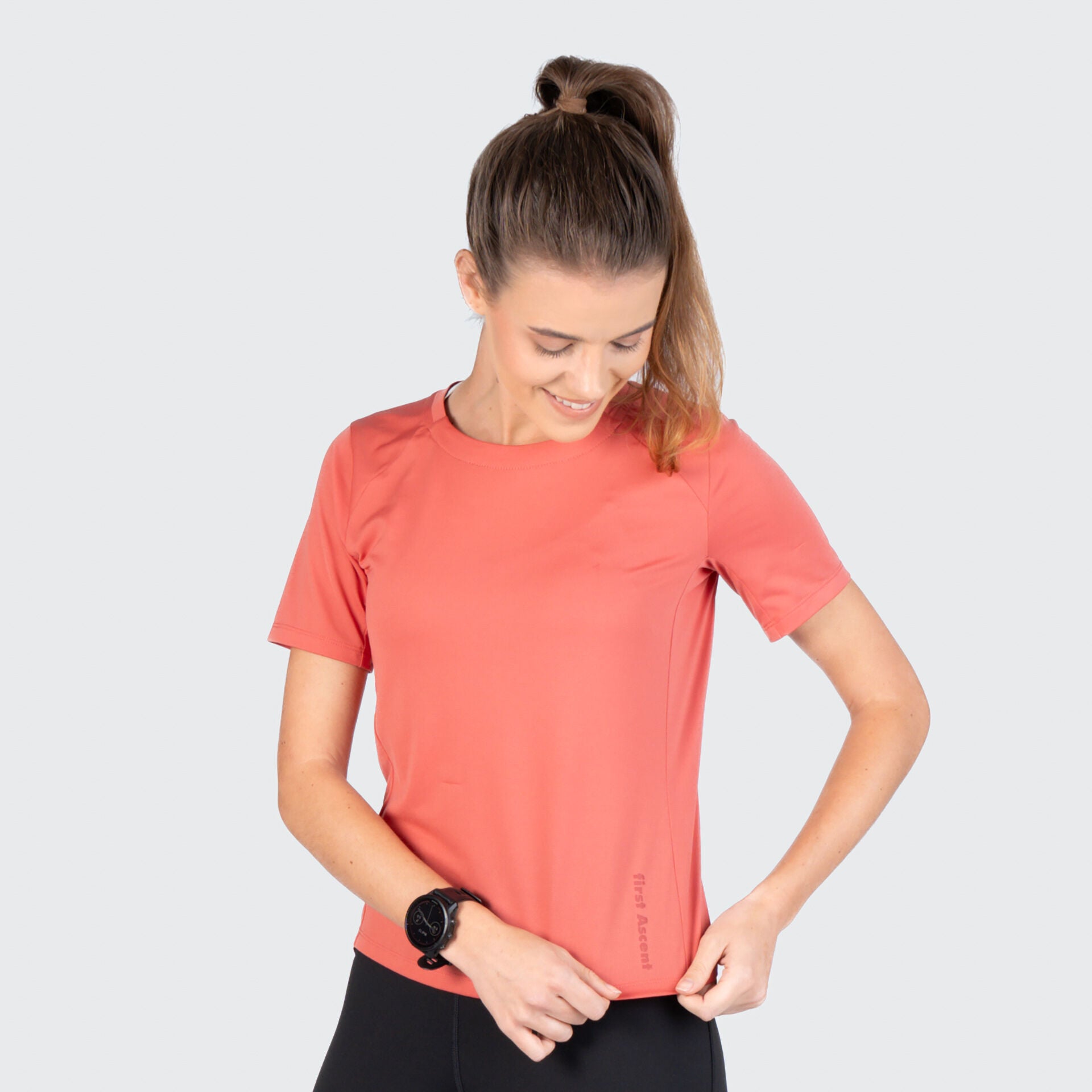 Enhance peak comfort and performance in our Ladies Kinetic Tee. Designed from a lightweight fabric with cooling yarn properties and a ventilated pattern, its reflective trims and thumbholes guarantee a secure and energized run. While its relaxed, shorter fit provides uninhibited movement with every stride.