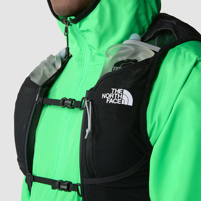 The Sunriser Run Vest 8 is one-part vest, one-part backpack. The 8-litre pack is designed to hold everything you need for a long day on the trail, while the bungee system can hold extra snacks, a water filter or an extra layer you can pull on when the temperature drops. There are five pockets in total consisting of two snack pockets, two water bottle pockets and a secure-zip phone pocket. And if that wasn't enough space, there's a trekking-pole carry system on the rear of the backpack for steep uphill sections and hilly terrain. Side compression provides a custom fit for your torso and minimises bouncing when you're running. Plus, with two 500-ml soft flasks included and a 2-litre bladder pocket with internal routing for a hose, you won't be short on hydration.
